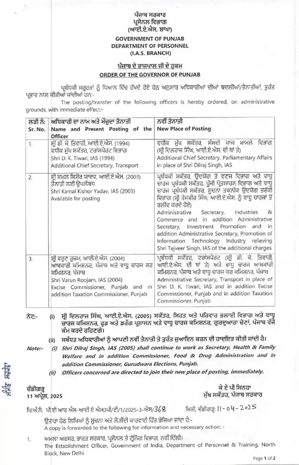 करनालखेलचंडीगढ़जिंददेश-विदेशपंचकुलापंजाबपानीपतराज्यहरियाणा *पंजाब सरकार ने किए 3, IAS अधिकारियों के नियुक्ति एवं तबादले* April 11, 2025 RAJESH OBEROI *राणा ओबराय* *राष्ट्रीय खोज/भारतीय न्यूज,* ,,,,,,,,,,,,,,,,,,, *पंजाब सरकार ने किए 3, IAS अधिकारियों के नियुक्ति एवं तबादले*