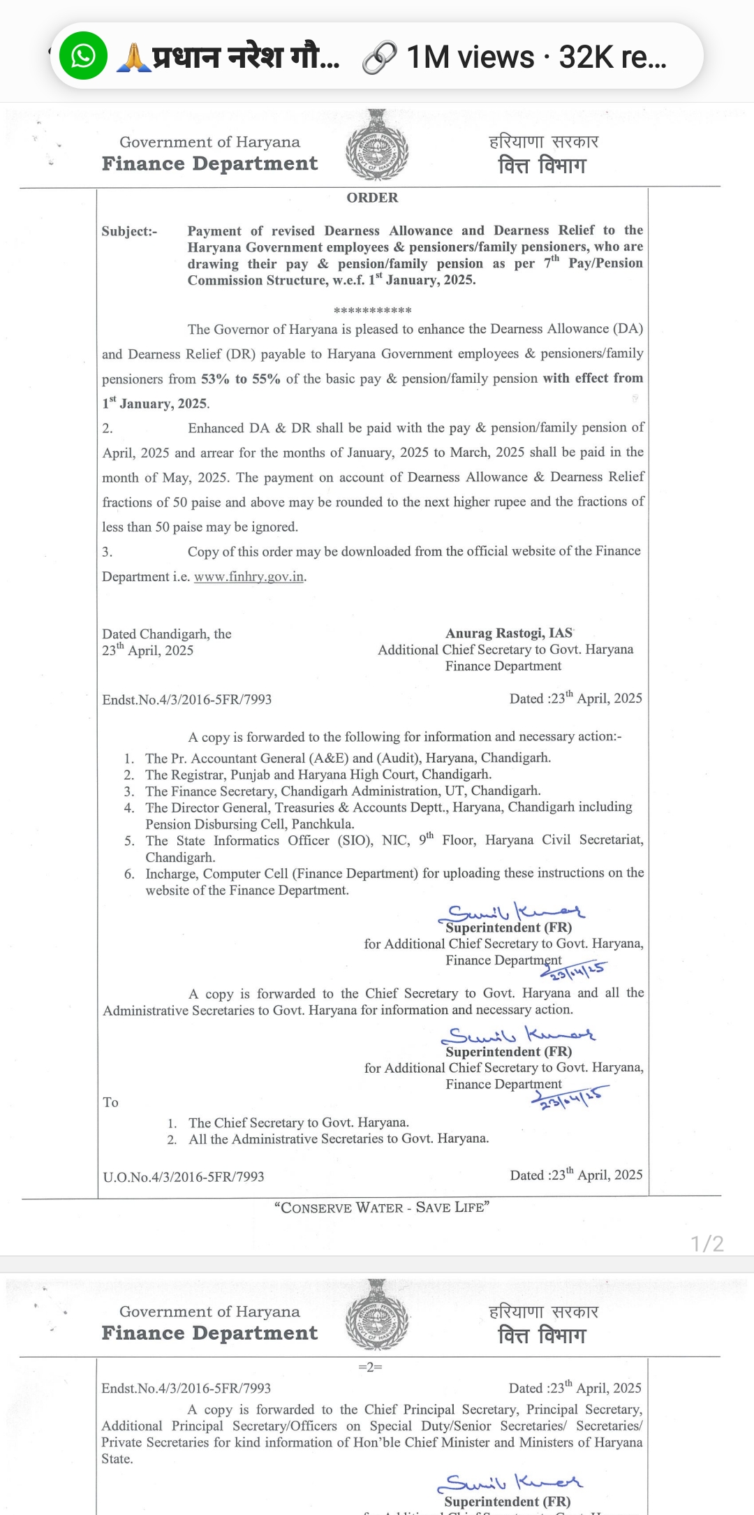 चंडीगढ़देश-विदेशपंचकुलापानीपतहरियाणा *हरियाणा कर्मचारियों और पेंशनर की बल्ले- बल्ले / डीए बढ़कर हुआ 55% / सरकारी आदेश जारी* April 23, 2025 RAJESH OBEROI राणा ओबराय राष्ट्रीय खोज/भारतीय न्यूज, ,,,,,,,,,,,,,,,,,,,, *हरियाणा कर्मचारियों और पेंशनर की बल्ले- बल्ले / डीए बढ़कर हुआ 55% / सरकारी आदेश जारी*