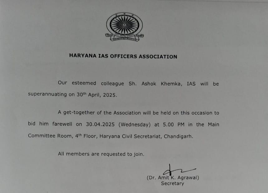करनालचंडीगढ़जिंददेश-विदेशपंचकुलापंजाबपानीपतहरियाणा *सबसे ज्यादा बदलियों को झेलने के आरोप लगाने वाले हरियाणा सरकार के वरिष्ठ आईएएस अशोक खेमका 30 अप्रैल को हो जाएंगे रिटायर* April 29, 2025 RAJESH OBEROI *राणा ओबराय* *राष्ट्रीय खोज/भारतीय न्यूज,* ,,,,,,,,,,,,,,,,,,,,, *सबसे ज्यादा बदलियों को झेलने के आरोप लगाने वाले हरियाणा सरकार के वरिष्ठ आईएएस अशोक खेमका 30 अप्रैल को हो जाएंगे रिटायर*