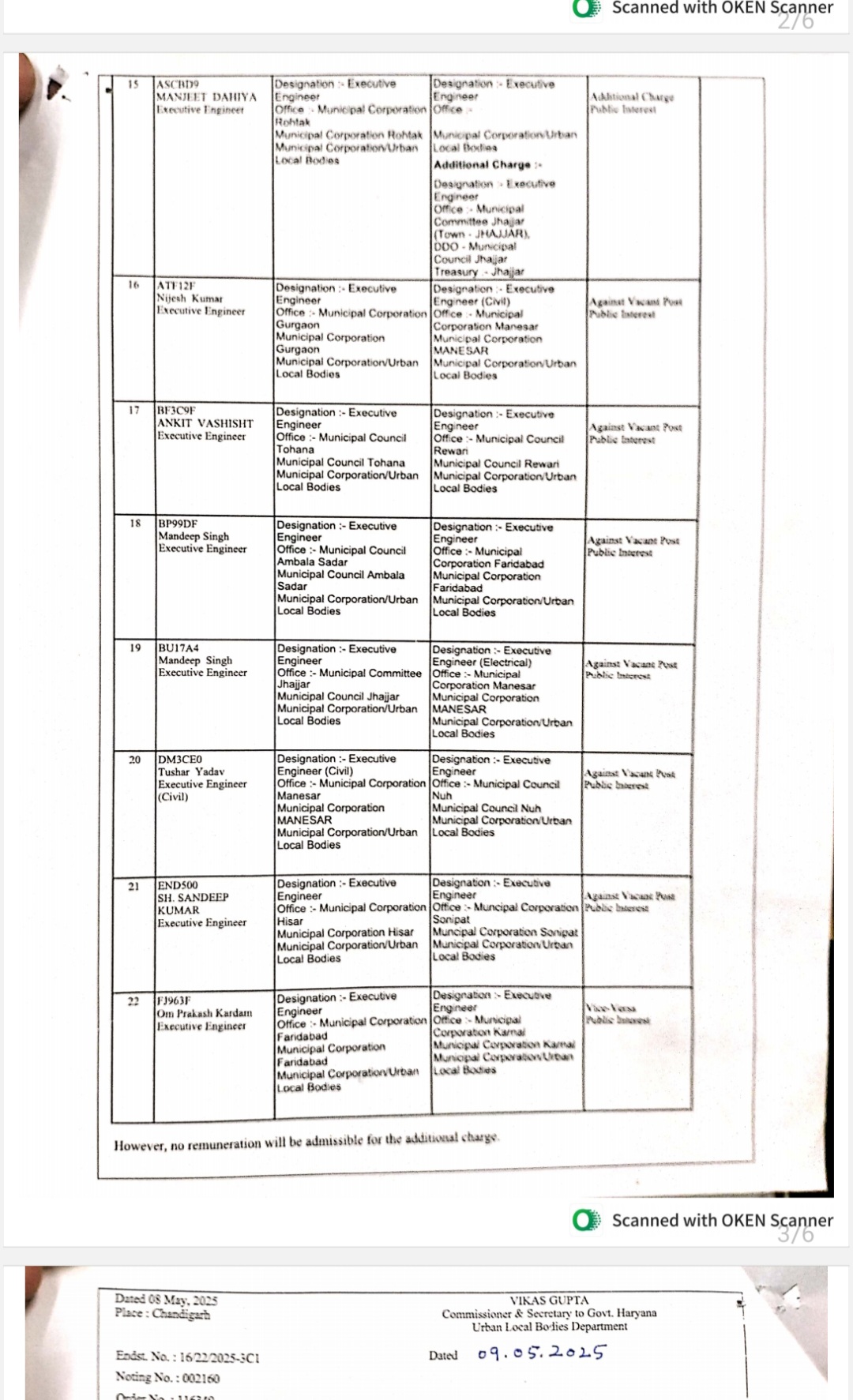 खेल *हरियाणा सरकार ने बड़ी संख्या में स्थानीय निकाय विभाग में किए कार्यकारी अभियंता के तबादले/ गुरूग्राम तथा फरीदाबाद में बरसो से जमे हुए XEN बदले* May 9, 2025 RAJESH OBEROI *राणा ओबराय* *राष्ट्रीय खोज/भारतीय न्यूज,* ,,,,,,,,,,,,,,,,,,,, *हरियाणा सरकार ने बड़ी संख्या में स्थानीय निकाय विभाग में किए कार्यकारी अभियंता के तबादले/ गुरूग्राम तथा फरीदाबाद में बरसो से जमे हुए XEN बदले*