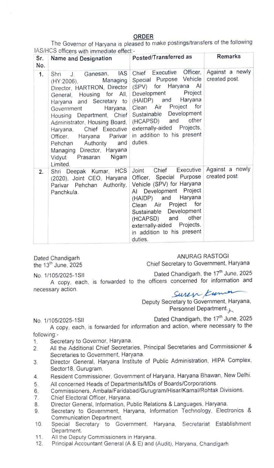 करनालखेलचंडीगढ़जिंददेश-विदेशपंचकुलापंजाबपानीपतराज्यहरियाणा *हरियाणा सरकार द्वारा आईएएस तथा एचसीएस अधिकारियों का तबादला कार्यक्रम जारी/ फिर बदले गए IAS तथा HCS अधिकारी* June 17, 2025 RAJESH OBEROI *राणा ओबराय* *राष्ट्रीय खोज/भारतीय न्यूज,* ,,,,,,,,,,,,,,,,,,,, *हरियाणा सरकार द्वारा आईएएस तथा एचसीएस अधिकारियों का तबादला कार्यक्रम जारी/ फिर बदले गए IAS तथा HCS अधिकारी*