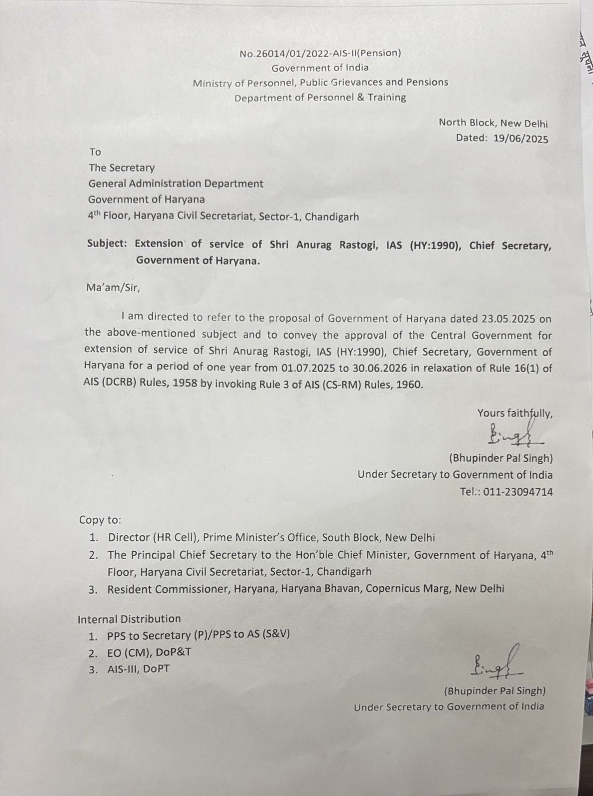 करनालचंडीगढ़जिंददेश-विदेशपंचकुलापंजाबपानीपतहरियाणा *केन्द्र सरकार ने हरियाणा के मुख्य सचिव अनुराग रस्तोगी की सेवाकाल में कई एक वर्ष की वृद्धि* *केंद्र सरकार ने आदेश जारी* June 20, 2025 RAJESH OBEROI राणा ओबराय राष्ट्रीय खोज/भारतीय न्यूज, ,,,,,,,,,,,,,,,,,,,,, *केन्द्र सरकार ने हरियाणा के मुख्य सचिव अनुराग रस्तोगी की सेवाकाल में कई एक वर्ष की वृद्धि* *केन्द्र सरकार ने आदेश जारी*