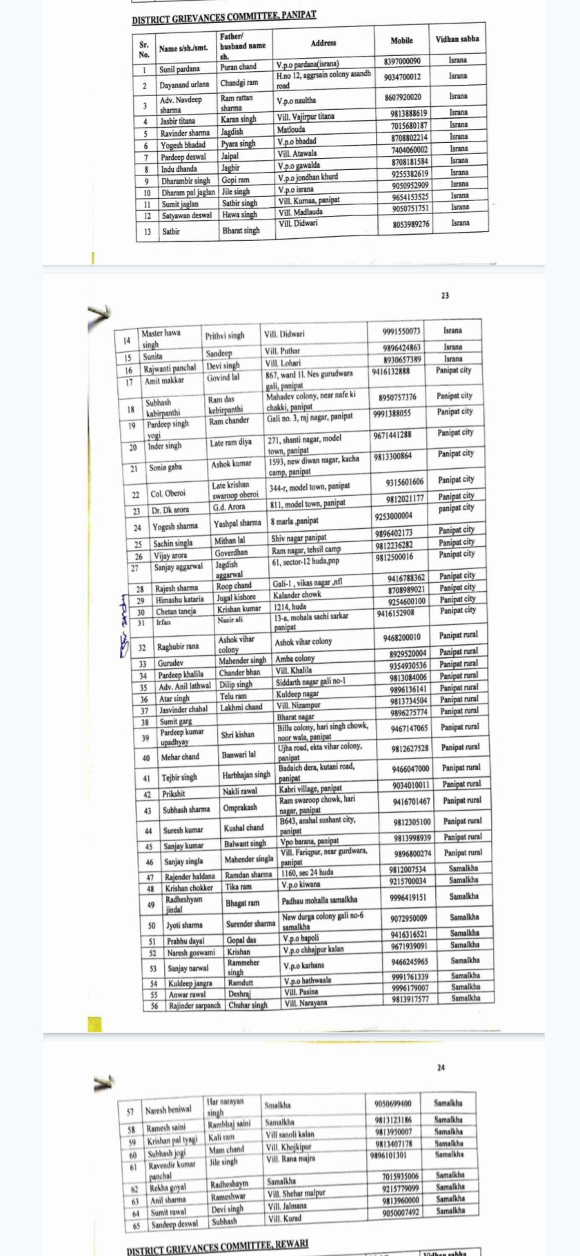 करनालचंडीगढ़जिंददेश-विदेशपंचकुलापंजाबपानीपतहरियाणा *हरियाणा सरकार ने अनेको जिलों में बनाये जिला कष्ट निवारण समिति के सदस्य* June 27, 2025 RAJESH OBEROI *राणा ओबराय* *राष्ट्रीय खोज/भारतीय न्यूज,* ,,,,,,,,,,,,,,,,,,,, *हरियाणा की नायब सरकार ने अनेको जिलों में बनाये जिला कष्ट निवारण समिति के सदस्य* *पानीपत जिले की लिस्ट*