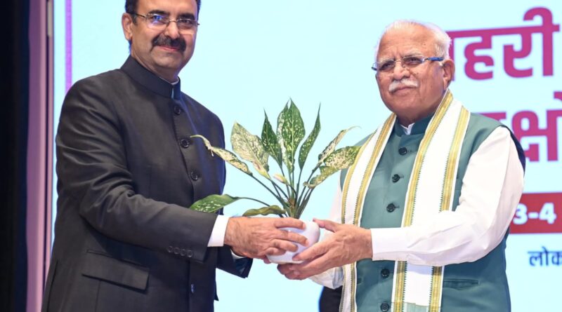 केंद्रीय मंत्री मनोहरलाल के पहुचने पर अभिनंदन करते स्पीकर हरविंद्र कल्याण*