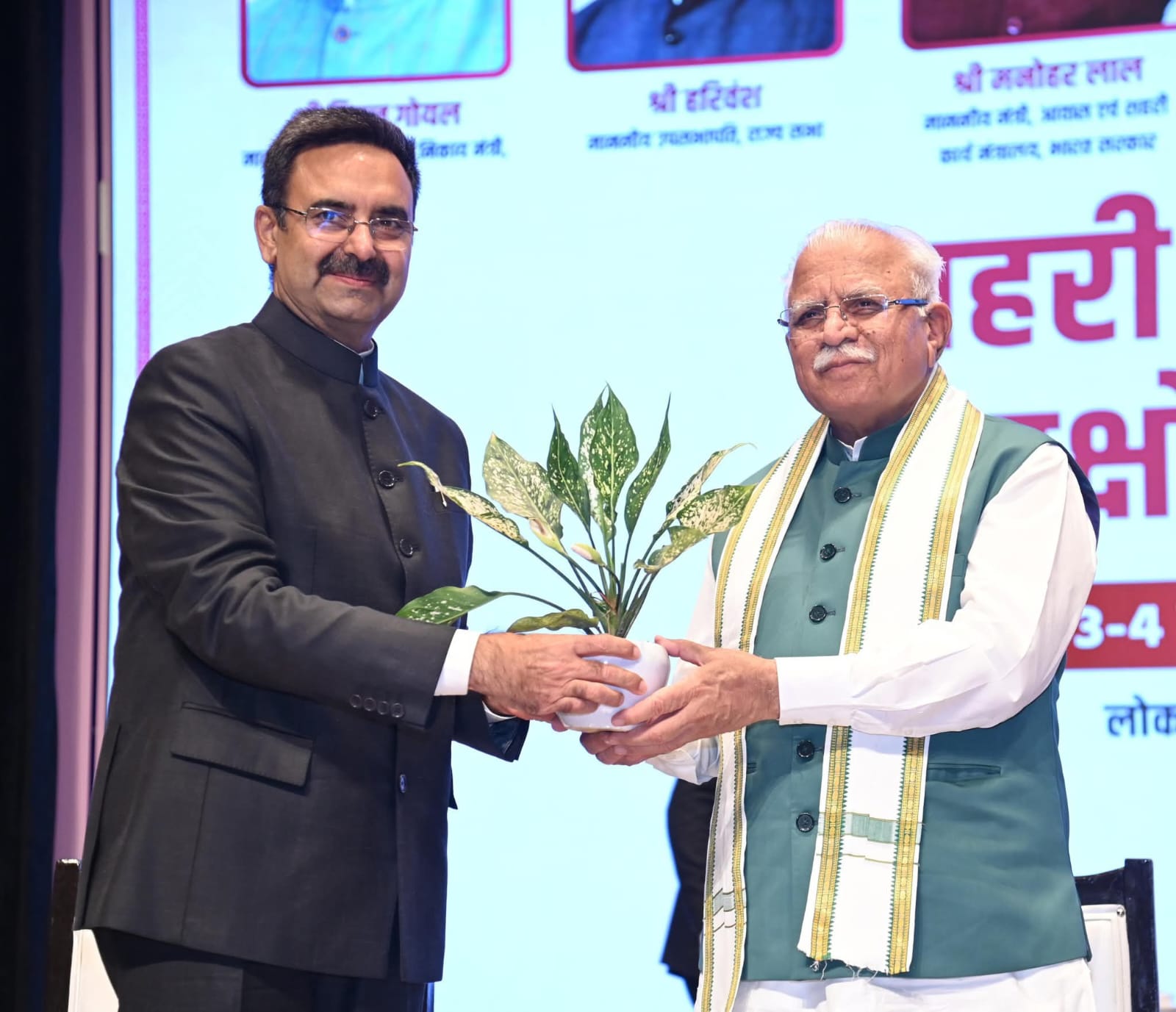 केंद्रीय मंत्री मनोहरलाल के पहुचने पर अभिनंदन करते स्पीकर हरविंद्र कल्याण*केंद्रीय ऊर्जा मंत्री श्री मनोहर लाल का जिला गुरुग्राम के मानेसर में आयोजित शहरी स्थानीय निकायों के अध्यक्षों के राष्ट्रीय सम्मेलन में पहुंचने पर हरियाणा विधानसभा अध्यक्ष श्री हरविंद्र कल्याण स्वागत करते हुए।