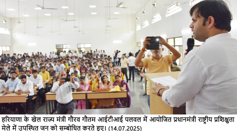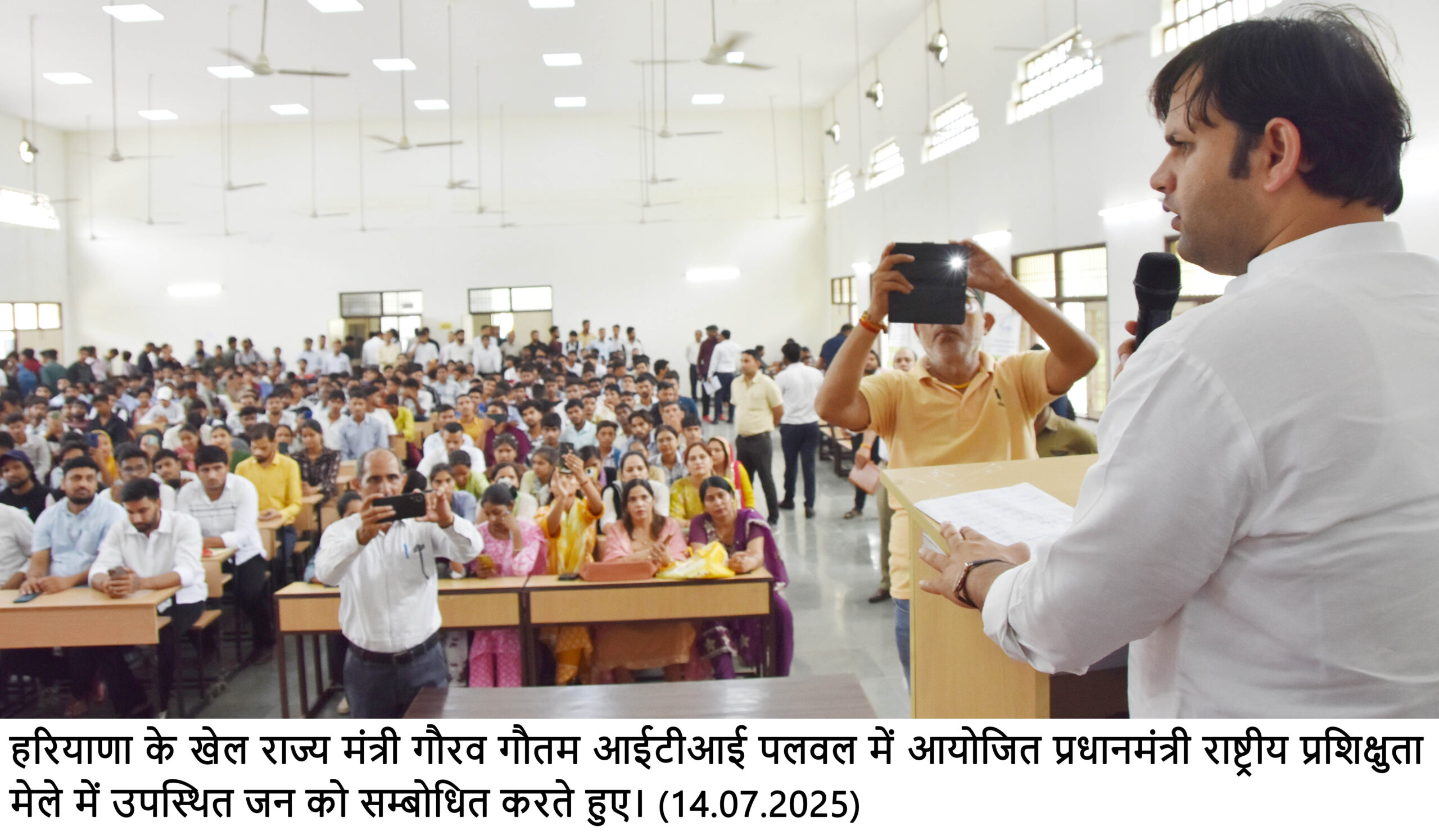 राणा ओबराय राष्ट्रीय खोज/भारतीय न्यूज, ,,,,,,,,,,,,,,,,,,,, हरियाणा के युवा नेता एवं खेल राज्य मंत्री गौरव गौतम आईटीआई पलवल में आयोजित प्रधानमंत्री राष्ट्रीय प्रशिक्षुता मेले में उपस्थित जन को सम्बोधित करते हुए*