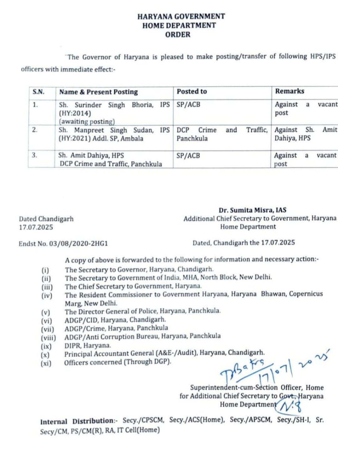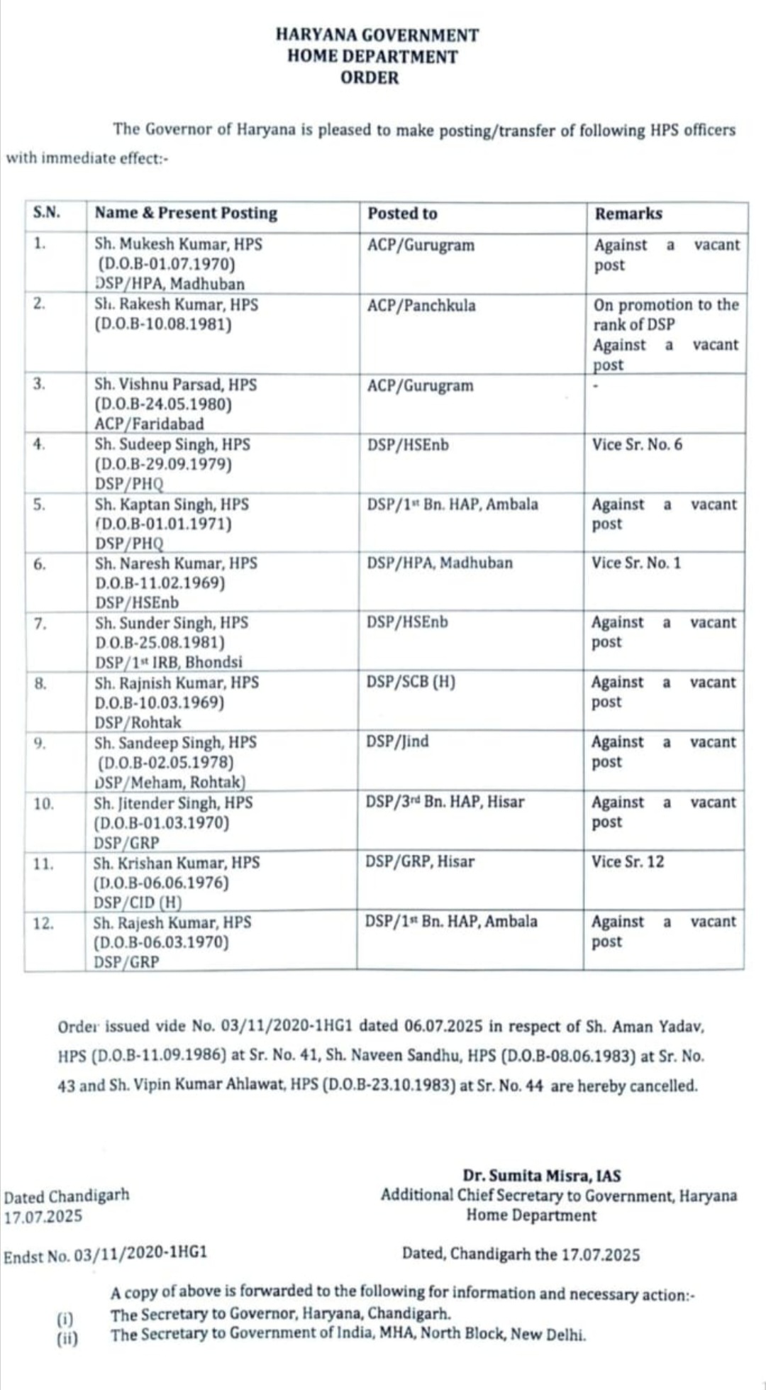 खेल *हरियाणा सरकार ने पुलिस विभाग में बड़ा फेरबदल करते हुए IPS के साथ -साथ बदले अनेको DSP* *2021 बेच के IPS मनप्रीत सिंह सूडान पंचकूला के DCP ट्रैफिक & क्राइम नियुक्त* *देखें लिस्ट /* July 17, 2025 RAJESH OBEROI *राणा ओबराय* *राष्ट्रीय खोज/भारतीय न्यूज,* ,,,,,,,,,,,,,,,,,,,,, *हरियाणा सरकार ने पुलिस विभाग में बड़ा फेरबदल करते हुए IPS के साथ -साथ बदले अनेको DSP* *2021 बेच के IPS मनप्रीत सिंह सूडान पंचकूला के DCP ट्रैफिक & क्राइम नियुक्त* *देखें लिस्ट /*