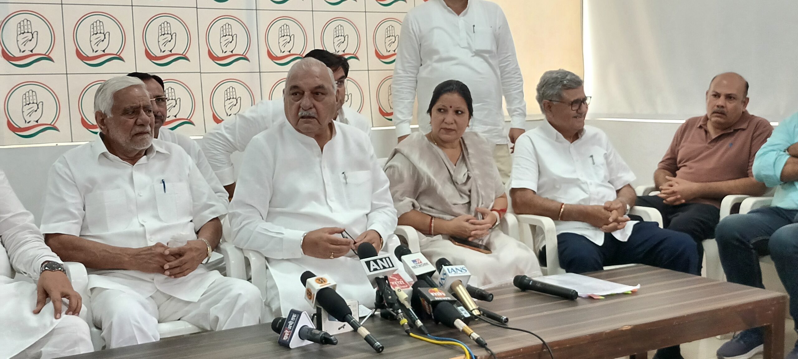 विधानसभा सत्र समाप्त होने के बाद हरियाणा के पूर्व मुख्यमंत्री भूपेन्द्र हूडा अपने चंडीगढ निवास पर प्रेसवार्ता को सम्बोधित करते हुए*