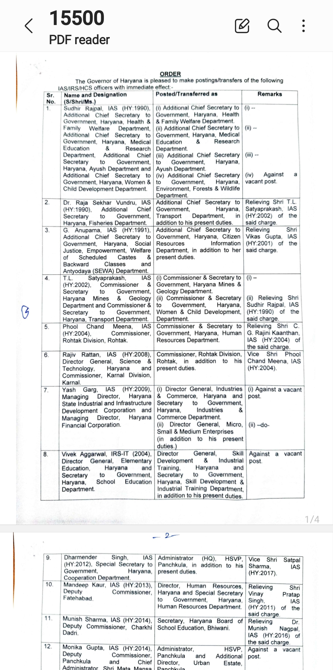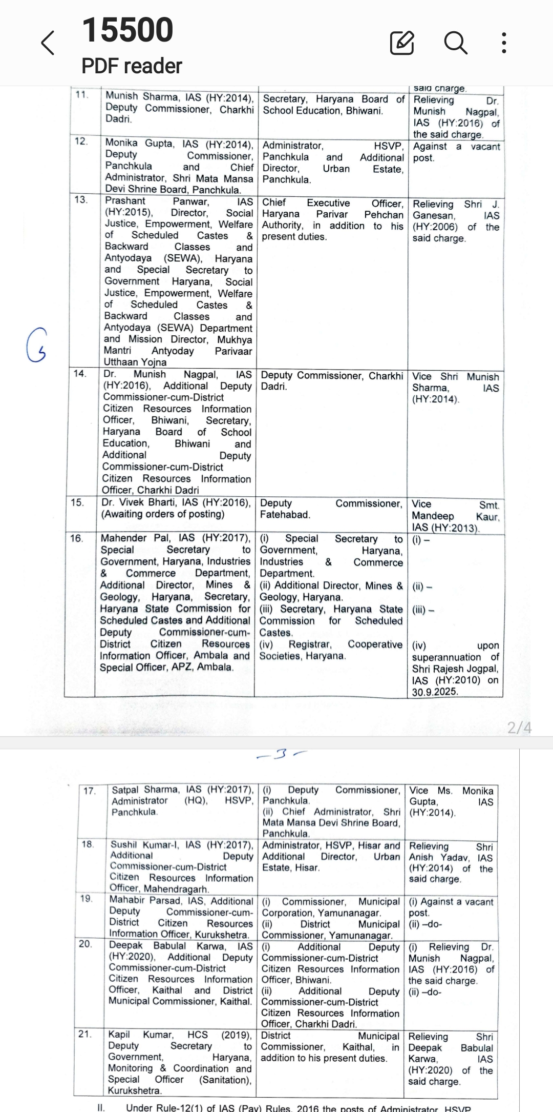 *हरियाणा सरकार ने किया बड़ा प्रशासनिक फेरबदल / कई जिलों के बदले डिप्टी कमिश्नर* *देखे लिस्ट*