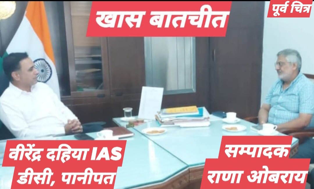 पानीपत ;- ढाई वर्ष से ज्यादा समय से जिला पानीपत में डीसी के पद पर कार्य निर्वहान कर रहे बहुत ही ईमानदार एवं पूरे जिला वासियों की समस्याओं का तुरंत समाधान करने वाले IAS वीरेंद्र दहिया के द्वारा किये गए विकास कार्य और उनकी कार्यशैली बारे चंडीगढ से पानीपत आए राष्ट्रीय खोज तथा भारतीय न्यूज के सम्पादक राणा ओबराय ने जिला पानीपत के बहुत से लोगों से बात की तो लोगो ने बताया कि जिला उपायुक्त बहुत ही नर्म स्वभाव के अधिकारी है। जो भी पीड़ित उनसे मिलने जाता है वह उनकी समस्या को सुनकर तुरंत समाधान करने का प्रयास करते हैं। मॉडल टाउन निवासी प्रितपाल सिंह ने बताया की मेरी पेंशन की समस्या थी जिसका DC साहिब ने तुरंत समाधान करवा दिया था। सेक्टर 18 निवासी सतीश ने बताया लोग कहते DC दहिया बहुत ही रहम दिल है सभी जरूरतमंद की मदद करने के लिए तैयार रहते हैं। चोडा बाजार के दुकानदार नवीन ने कहा जब से मौजूदा डीसी साहिब ने कार्यभार संभाला है तब से शहर में जाम में कमी आई है। बाजारों से अतिक्रमण हटाया जा रहा है। कुछ माह पहले मेरे द्वारा पानीपत के जिला उपायुक्त वीरेंद्र दहिया से लिए गए *”साक्षात्कार सम्पादक राणा ओबराय से खास बातचीत”* में बताया था की जब मैने पानीपत के DC के पद का कार्यभार संभाला तो मैने एक टारगेट फिक्स किया। मेरा पहला टारगेट था पानीपत की जनता को जाम से मुक्ति दिलाना। दूसरा टारगेट था शहर की सड़कों को चौड़ा करना। तीसरा टारगेट था कि किसी का भी नया आर्ड लाइसेंस न बनाना। इन तीनो टारगेट पर ही ही मैं काम कर रहा हू। उन्होंने बताया काफी हद तक मैं अपने तीनो टारगेट में सफल होता दिखाई दे रहा हूँ। एक