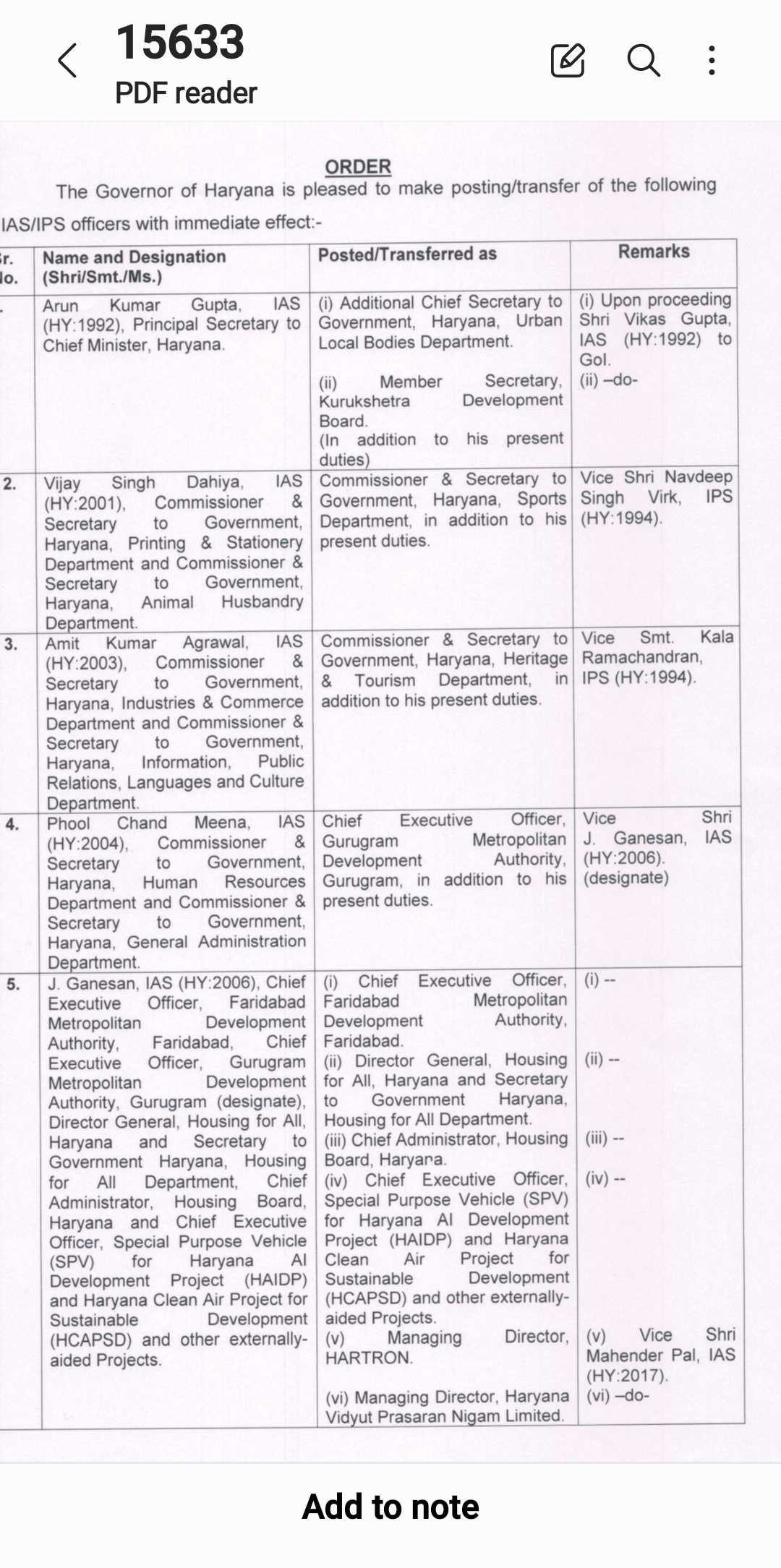 *हरियाणा सरकार ने तुरंत प्रभाव से 20 IAS अधिकारियों के किये नियुक्ति एव तबादले* *कमिश्नर अमित अग्रवाल को दो विभागों का मिला अतिरिक्त कार्यभार* *देखे तबादला लिस्ट*