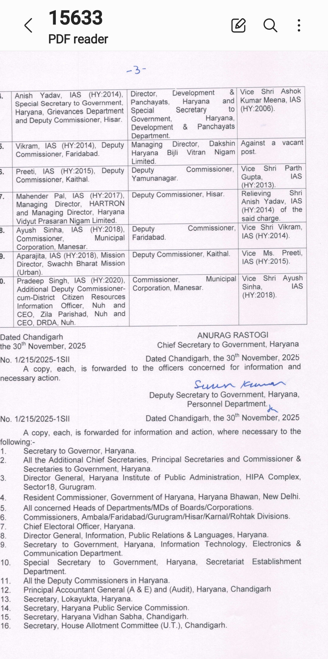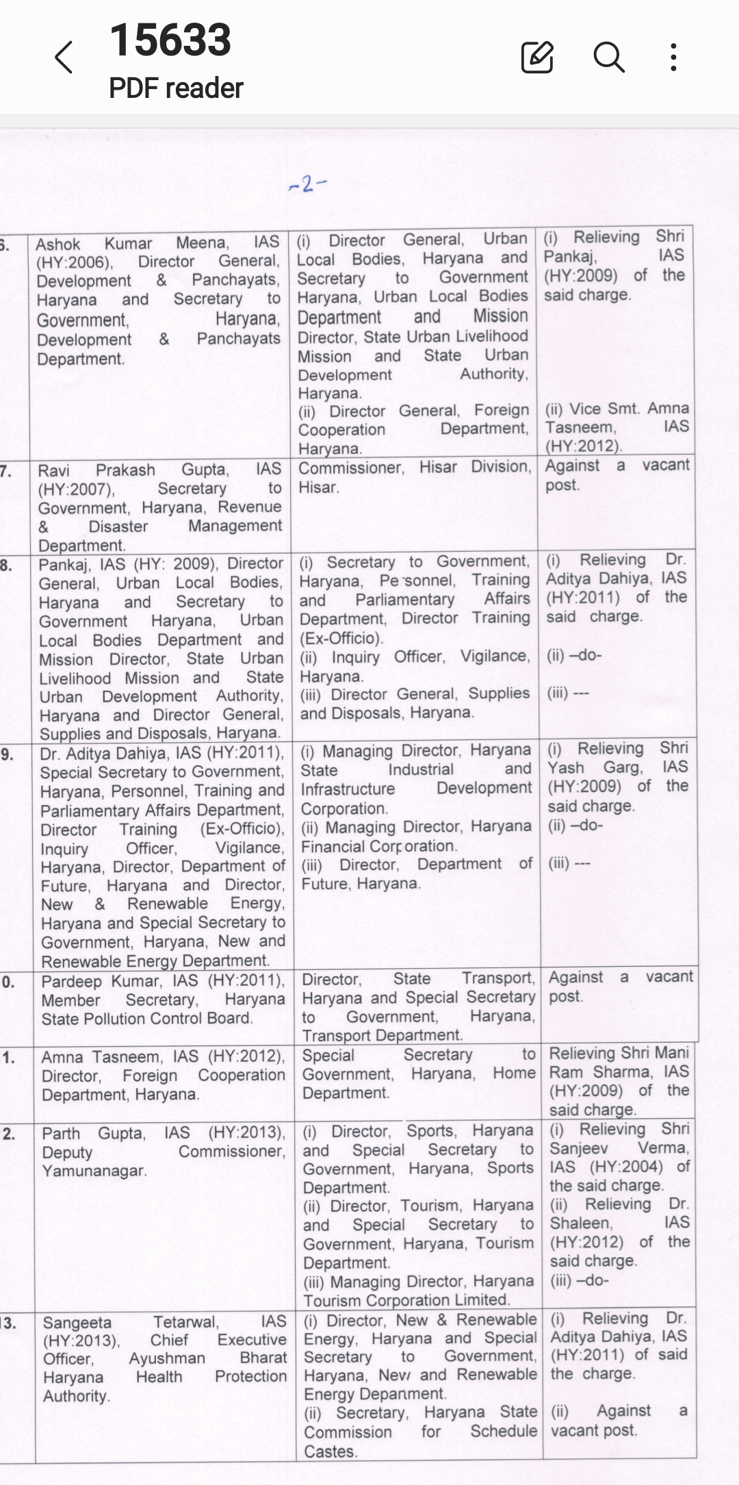*राणा ओबराय* *राष्ट्रीय खोज/भारतीय न्यूज,* ,,,,,,,,,,,,,,,,,,,,,, *हरियाणा सरकार ने तुरंत प्रभाव से 20 IAS अधिकारियों के किये नियुक्ति एव तबादले* *कमिश्नर अमित अग्रवाल को दो विभागों का मिला अतिरिक्त कार्यभार* *देखे तबादला लिस्ट*
