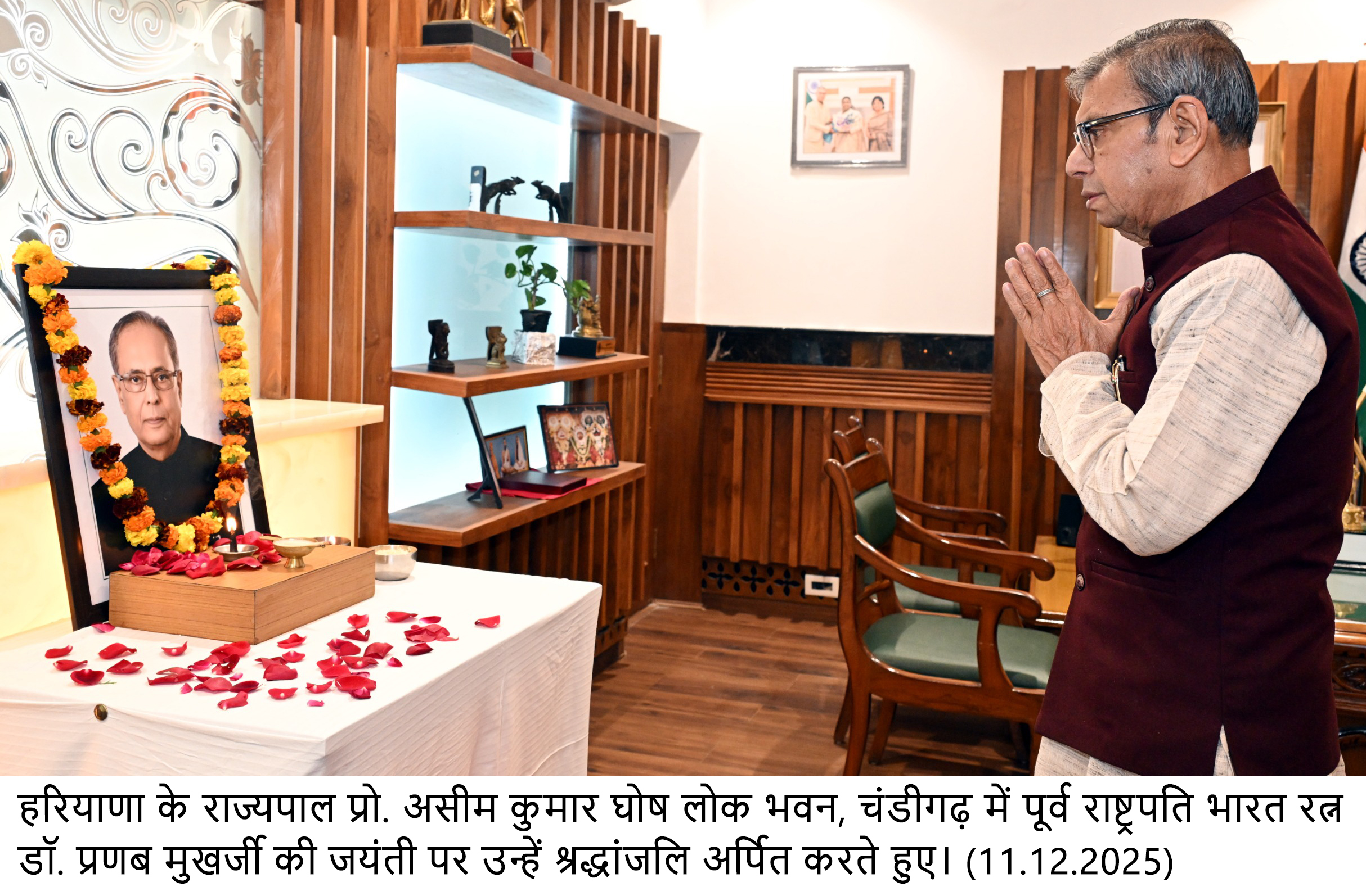 *हरियाणा के राज्यपाल प्रो. असीम कुमार घोष ने गुरुवार को लोक भवन, चंडीगढ़ में पूर्व राष्ट्रपति भारत रत्न डॉ. प्रणब मुखर्जी की जयंती पर उन्हें भावभीनी श्रद्धांजलि की अर्पित*