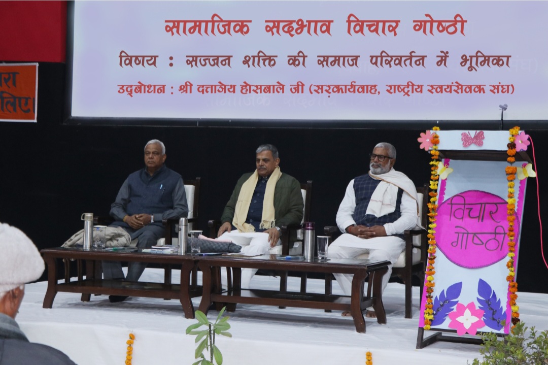 उन्होंने कहा कि देश पर इतने आक्रमण हुए, आक्रांताओं ने हमारी शिक्षा व्यवस्था, हमारी संस्कृति को खत्म करने के अनेकों प्रयास किए लेकिन इतने आक्रमणों के बाद भी हम खत्म नहीं हुए तो इसके पीछे जो ताकत है वह है हमारी परिवार व्यवस्था। विदेशी यात्रियों ने भी अपने यात्रा के अनुभवों में हमारी परिवार व्यवस्था का वर्णन प्रमुखता से किया है। क्योंकि हमारी परिवार व्यवस्था में बच्चों को स्किल व संस्कार दोनों चीजें एक साथ दी जाती रही है। उन्होंने कहा कि हमारे युवाओं में प्रतिभा बहुत है लेकिन आज हमारा युवा नशे की दलदल में फंसकर पथभ्रष्ट हो रहा है। पाश्चात्य सभ्यता के प्रभाव में आकर अपनी संस्कृति से दूर होता जा रहा है। युवाओं को नशे से बचाने व संस्कारित करने के लिए सामाजिक, धामिक संगठनों व समाज की सज्जन शक्ति को एकजुट होकर कार्य करने होंगे। देश एक बार फिर से विश्व का नेतृत्व करे इसके लिए समाज की सज्जन शक्ति को देश को अंदर से मजबूत करना होगा, बाहर से ताकतवर बनाना होगा। निजी स्वार्थों को छोड़कर, जात-पात, भाषा, पंथ से ऊपर उठकर राष्ट्र निर्माण, समाज परिवर्तन के कार्य करने होंगे। संघ इसके लिए निरंतर प्रयासरत है। इसके लिए संघ ने समाज परिवर्तन के लिए 5 संकल्प लिए हैं। इसमें सामाजिक समरसता, पर्यावरण संरक्षण, स्वदेशी वस्तुओं का प्रयोग, कुटुम्ब प्रबोधन तथा नागिरक कर्त्तव्य हैं। यदि हमें देश को स्वाभिमानी व शक्तिशाली बनाना है तो इन पांच संकल्पों को पूरा करने के लिए दृढ़ संकल्प लेना होगा। पूरे हरियाणा से विभिन्न आध्यात्मिक संस्थाओं के प्रतिनिधि तथा सामाजिक नेतृत्व करने वाले महानुभाव विचार गोष्ठी में उपस्थित रहे।