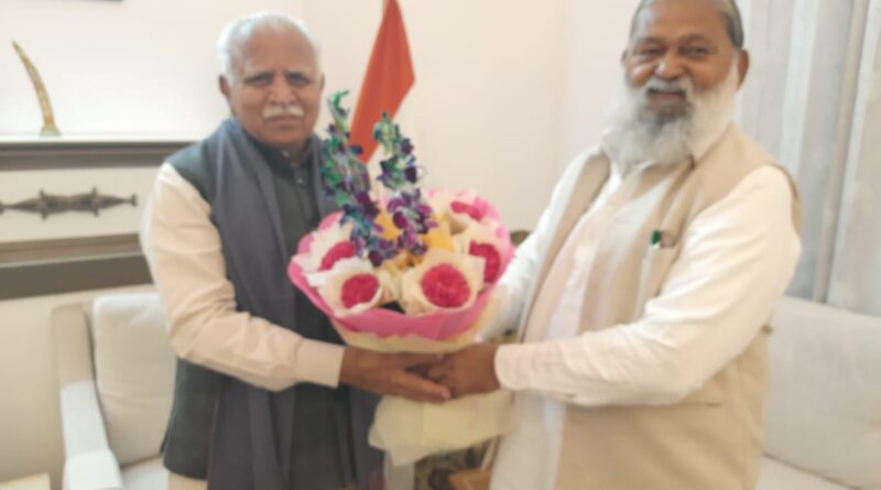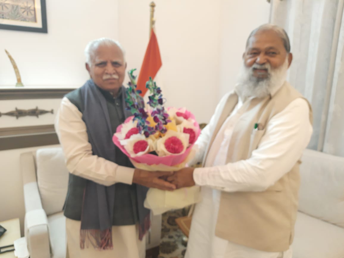 *हरियाणा के ऊर्जा मंत्री अनिल विज ने केंद्रीय मंत्री मनोहर लाल से की शिष्टाचार भेंट / दोनों ने की विकास मुद्दों पर चर्चा*