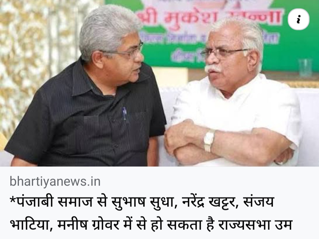 *भारतीय न्यूज की खबर पर फिर लगी मुहर/1 मार्च को लिखा था पंजाबी समाज से संजय भाटिया, एनके खट्टर, सुभाष सुधा अथवा मनीष ग्रोवर में हो सकता है राज्यसभा उम्मीदवार*