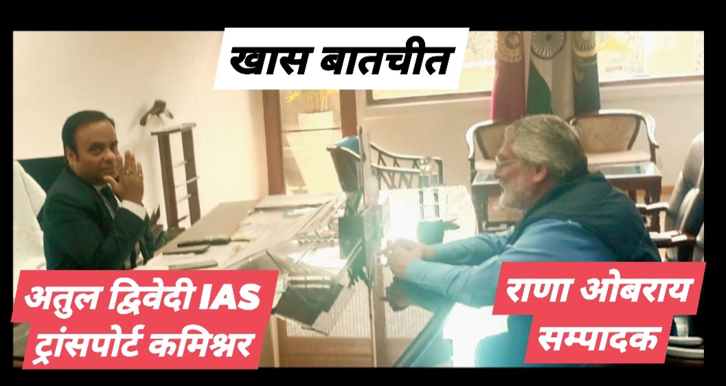 *हरियाणा ट्रांसपोर्ट कमिश्नर IAS अतुल द्विवेदी ने सम्पादक राणा ओबराय को खास बातचीत में बताया मेरा लक्ष्य खामियों को दूर कर प्रदेशवासियो को बेहतर ट्रांसपोर्ट सुविधा प्रदान करना*