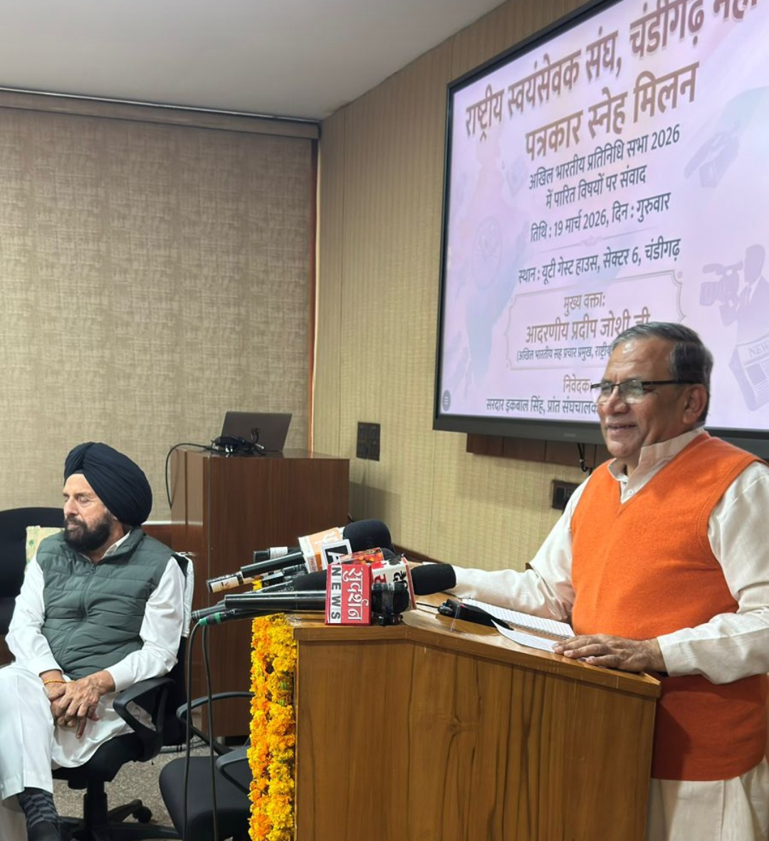 चंडीगढ़ ;- चंडीगढ़ में आयोजित पत्रकार वार्ता के दौरान राष्ट्रीय स्वयंसेवक संघ के सह प्रचार प्रमुख प्रदीप जोशी ने संघ प्रतिनिधि सभा से जुड़े विषयों एवं पंजाब में चल रहे सामाजिक कार्यों को लेकर विस्तार से जानकारी दी। उन्होंने बताया कि आरआरएस राज्य में 145 से अधिक गैर-सरकारी संगठनों (एनजीओ) के साथ मिलकर नशा विरोधी अभियान को मजबूती से आगे बढ़ा रहा है।